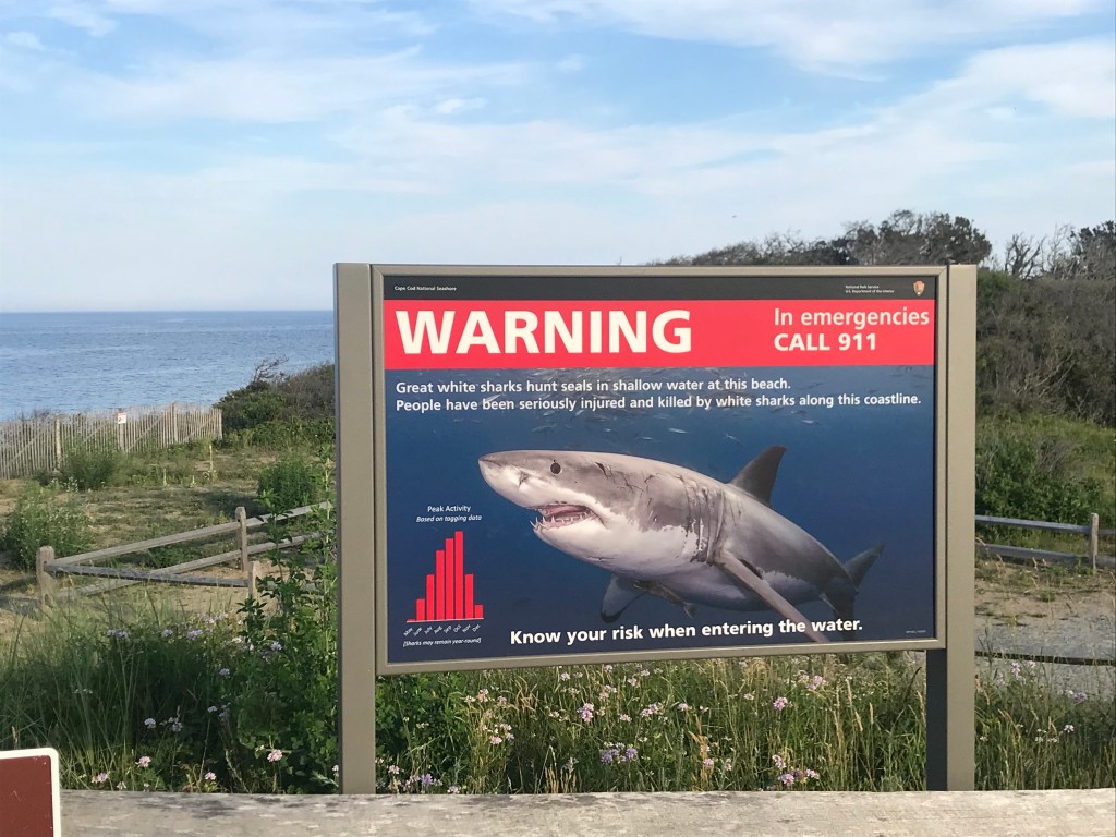 At Cape Cod, signs were posted everywhere to beware of Great White Sharks feeding in the area. As we walked down to the beach and watched seal after seal float along in the water just off the shore, the lure of sharks to the area made perfect sense. Afraid of sharks and mesmerized by the seals, we were content just watching the seals swim up and down the shoreline and walking the shore, enjoying the breathtaking views.