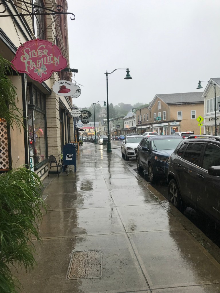 My husband had planned to take us to Mystic, Connecticut to see the Mystic drawbridge open and to walk the quaint town streets. However, the weather had other plans, so we quickly found shelter in the Mystic Drawbridge Ice Cream shop. After enjoying ice cream, it was still pouring outside and the drawbridge hadn’t risen, so we ran through the rain to our car, as we wanted to travel to Rhode Island for the late afternoon. By the time we arrived in Newport, Rhode Island, many of the mansion tours were closing for the day. We drove the streets of Newport in an effort to catch glimpses of the mansions in spite of missing the tours, and though we were able to see some, many were hidden from the road. After driving around Newport, we stopped in Bristol, Rhode Island for a wonderful dinner at an Irish Pub.
