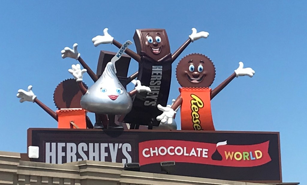 The next morning, we determined that we had done the activities and seen the sites in the greater Boston area that we desired for this trip, so we loaded up the RV once again. Since we still had some time left for our vacation, we decided a trip to Pennsylvania was in order. After a day of travel, we found ourselves visiting Hershey’s Chocolate World in Hershey, Pennsylvania and enjoying a tour explaining how they make their chocolate. We, of course, did not leave until we had purchased A LOT of chocolate!